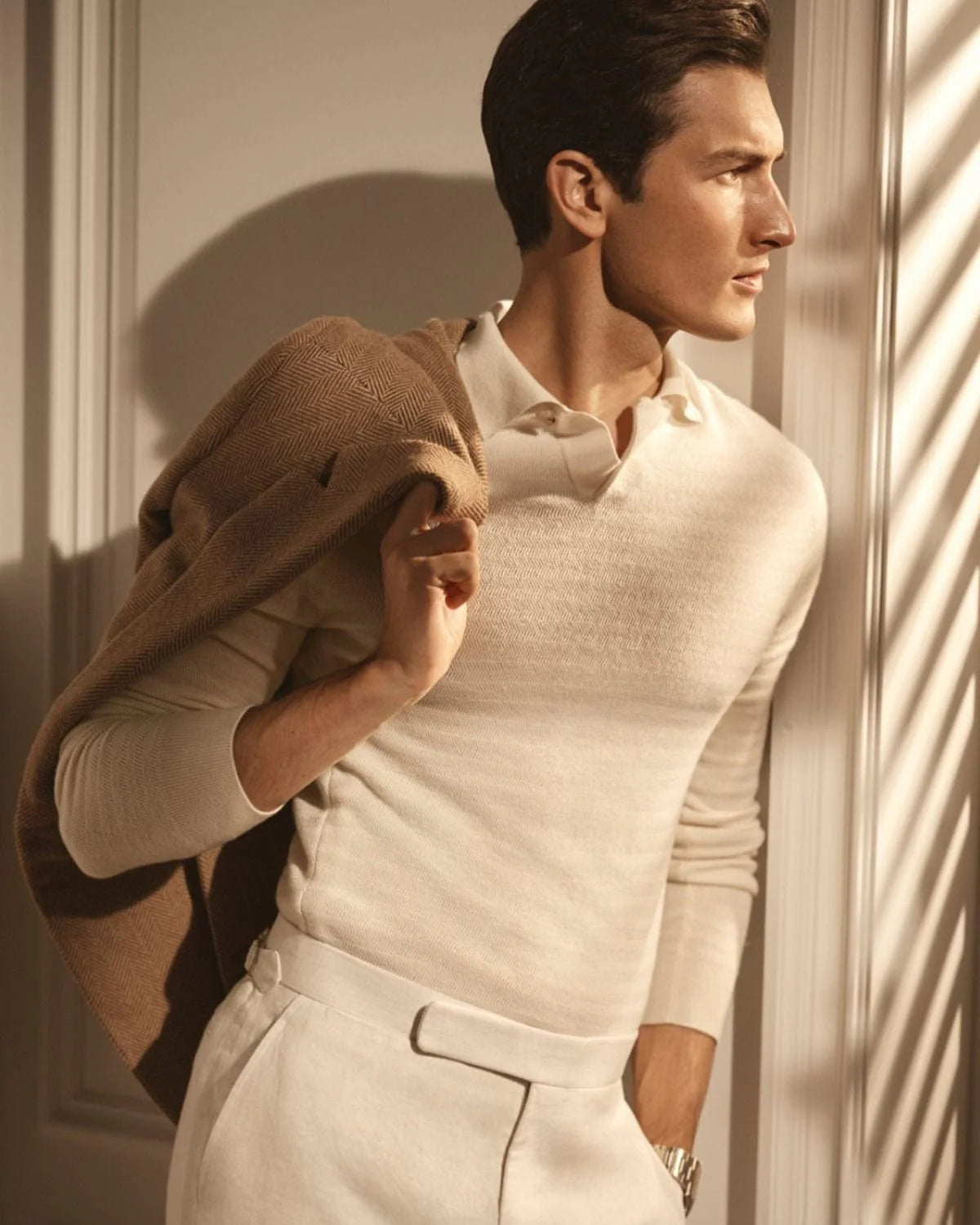 Unser Kaschmir passt sich allmaehlich Ihrer Form an und drapiert sich natuerlich fuer eine makellose Passform. Ueber Komfort hinaus verstaerkt es Ihre Haltung und Praesenz mit dezenter Selbstsicherheit und zeitloser Eleganz.