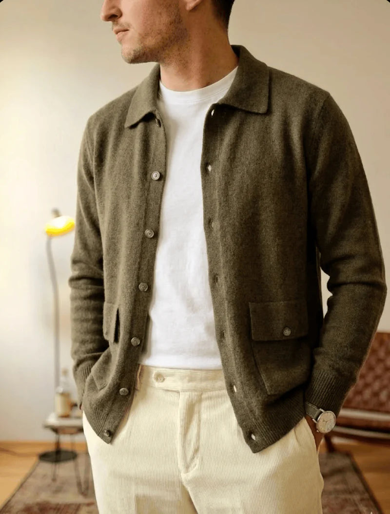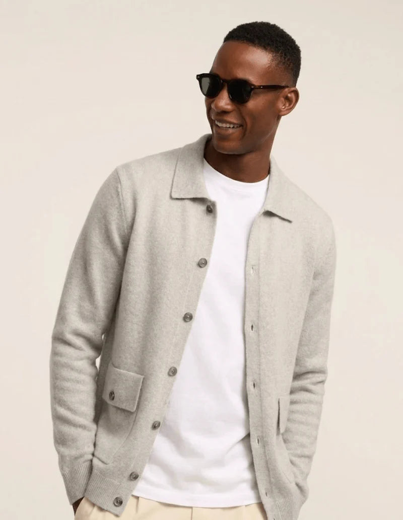 Veredeln Sie Ihre Garderobe mit dieser weichen Kaschmirjacke mit Knöpfen – ein zeitloses Stück, das mühelose Eleganz und Komfort verkörpert. Entworfen für den modernen Gentleman, der dezenten Luxus schätzt, bietet sie sowohl Raffinesse als auch Vielseitigkeit.